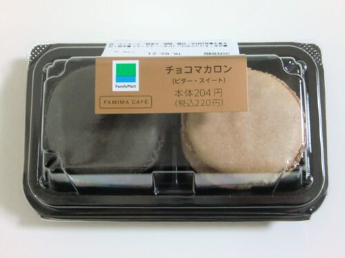 こんにちは!第539回目の調査です!今回のPB食品はこちら! ファミマカフェの『チョコマカロン〈ビター・スイート〉』です!マカロン嫌いな人も必見!・・かも。調査開始!!